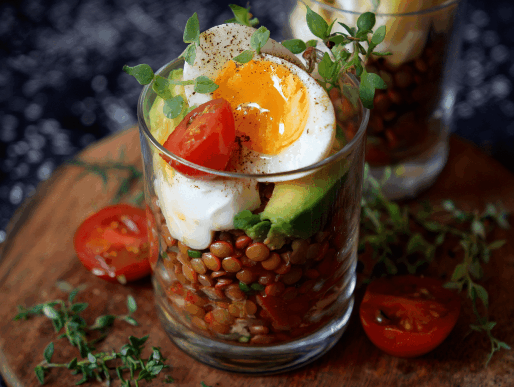 Dienstag: Herzhaftes Frühstücksglas mit Linsen und Ei