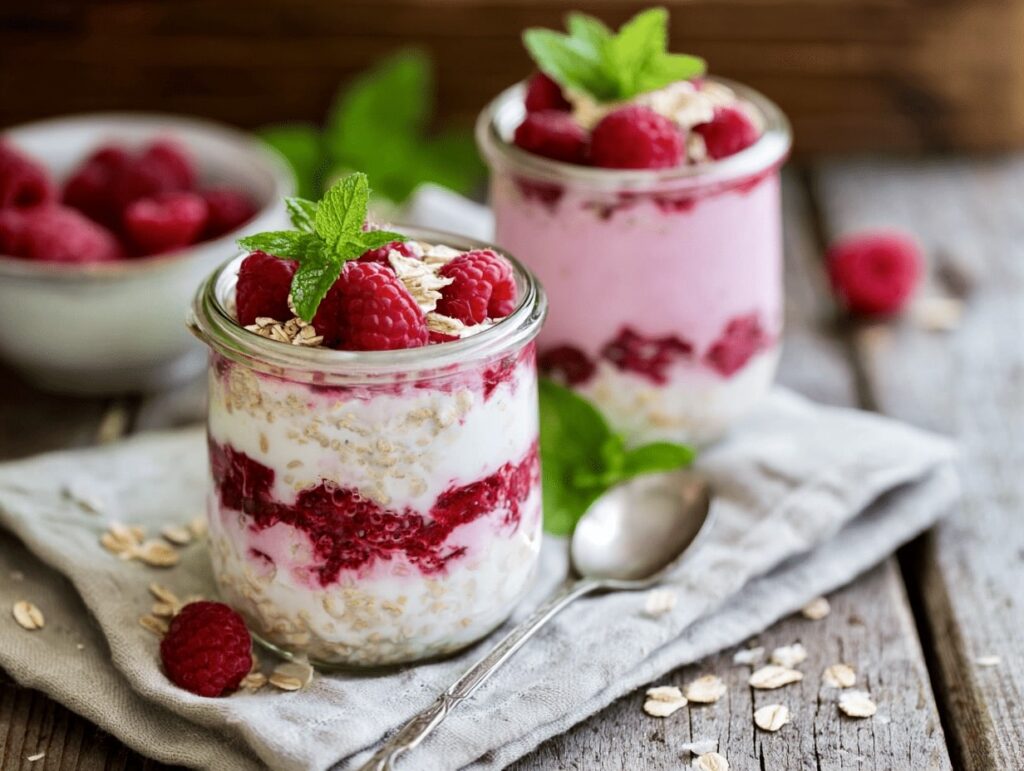 Montag: Overnight Oats mit Skyr und Himbeeren
