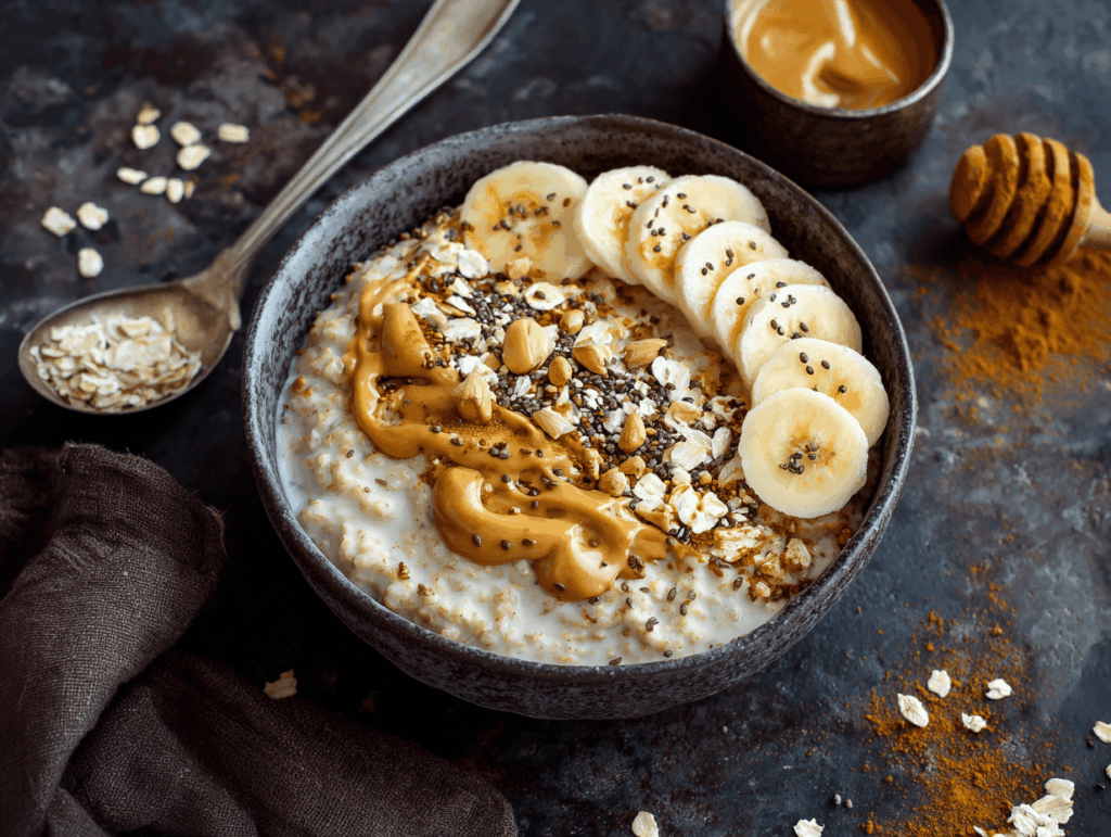 Du brauchst keinen Smoothie mit 27 Zutaten und Matcha aus Kyoto. Du brauchst nur Haferflocken, ein bisschen Kreativität – und vielleicht noch Mandelmus on top. 🍌